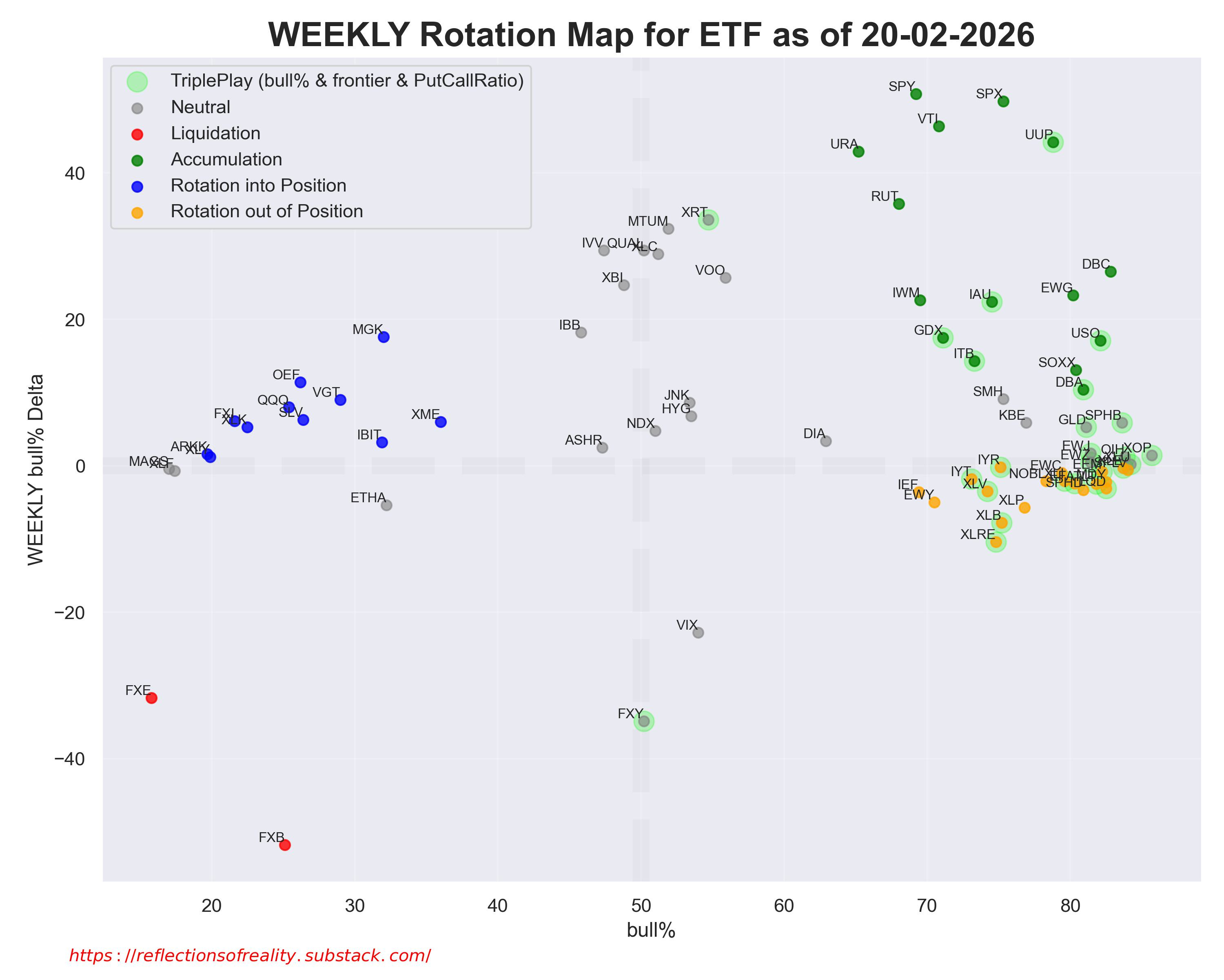 [🚀] = Bull Trendfollowing Triggered (only in Accumulation if bull% >50%)